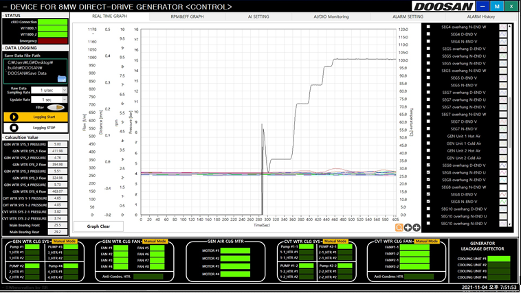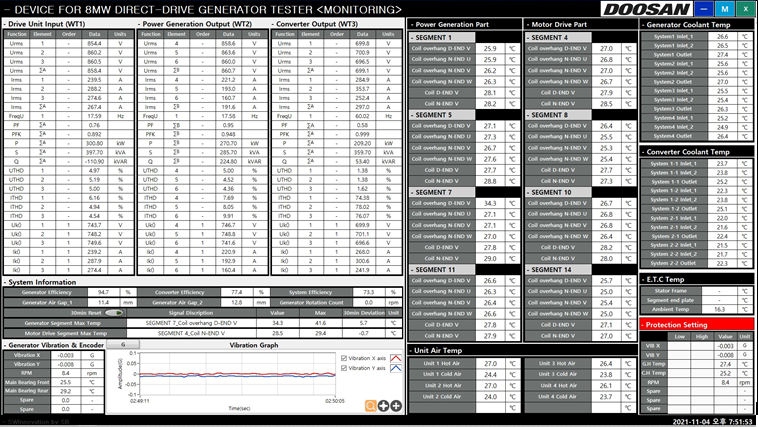 1) 8MW급 풍력 터빈의 사용되는 발전기의 효율 및 인증 검사를 위한 프로그램.