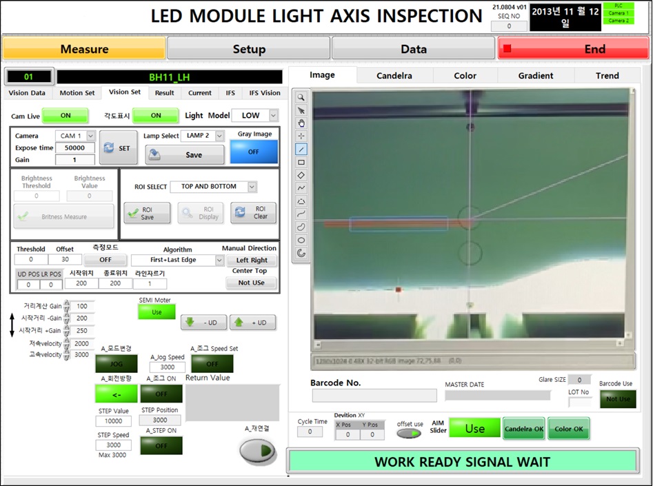 1. LED 광 모듈 검사기의 AIM 기능의 성능 향상을 위해 거리에 따른 위치 값을 계산 AIM 모터 구동하여 AIM Time을 대폭 줄이는 Test 프로그램 제작